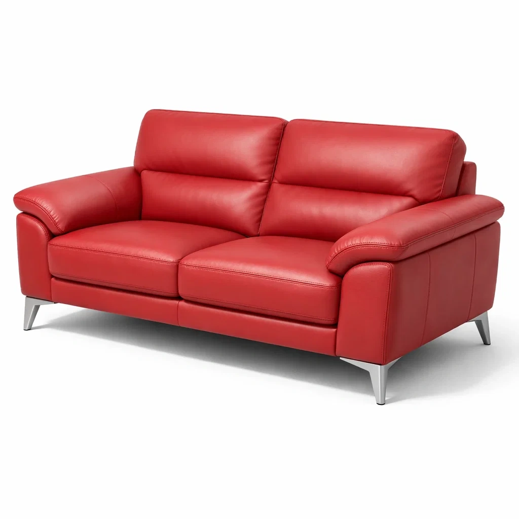 Canapé deux places en cuir avec structure en métal rouge